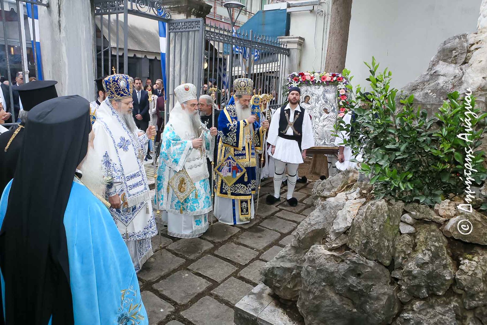 Ακολούθησε Λιτάνευση της Ιεράς Εικόνας του Ευαγγελισμού της Θεοτόκου και μετάβαση με επίσημη πομπή στο Μνημείο του Αθανασίου Διάκου, όπου εψάλη Αρχιερατική Επιμνημόσυνος Δέηση.