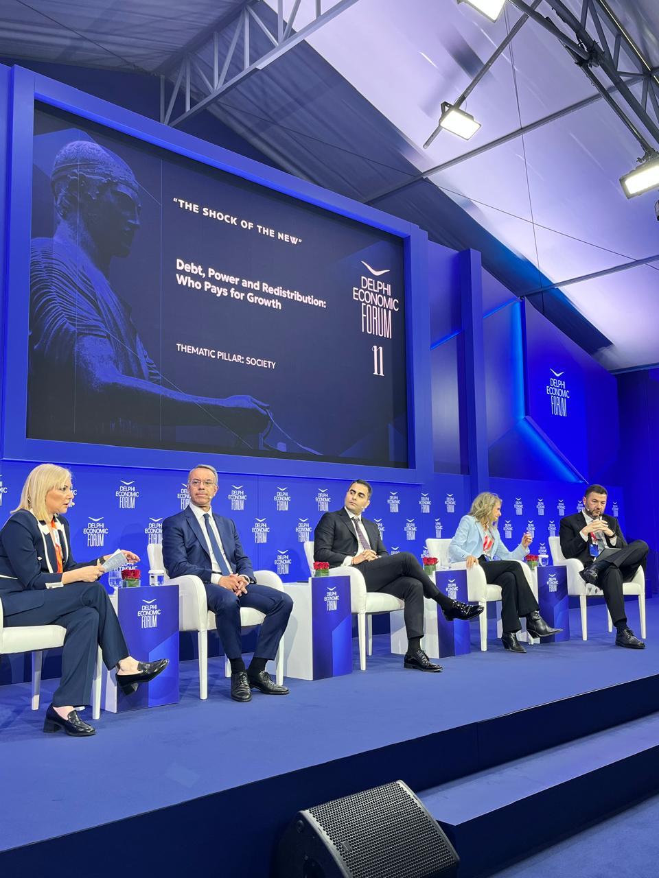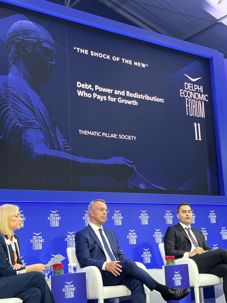 Η διαχείριση του δημόσιου και του ιδιωτικού χρέους της χώρας, καθώς και το κατά πόσο τα υπερπλεονάσματα διαχέονται στην κοινωνία, ενισχύοντας το διαθέσιμο εισόδημα των πολιτών, βρέθηκαν στο επίκεντρο συζήτησης στο 11ο Οικονομικό Φόρουμ των Δελφών, το οποίο πραγματοποιείται στους Δελφούς από τις 22 έως τις 25 Απριλίου 2026.